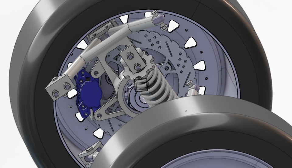 The FSAE Race Car's wheel side assembly consisted of a brake disc rotor installed on the wheel hub and a brake caliper mounted on the steering knuckle.