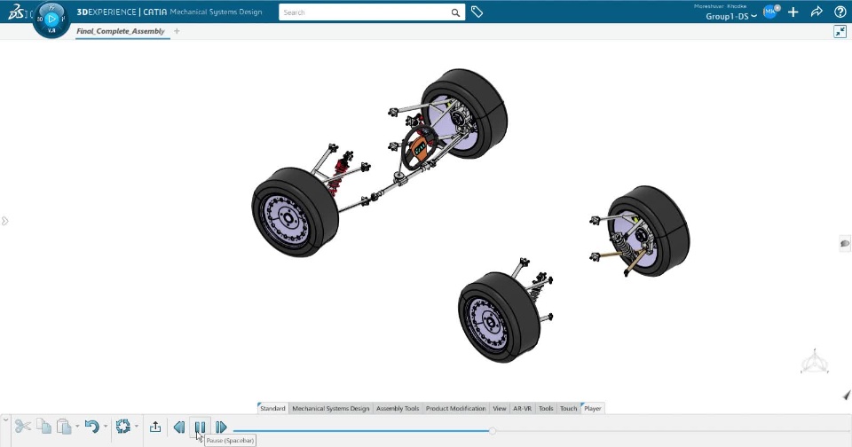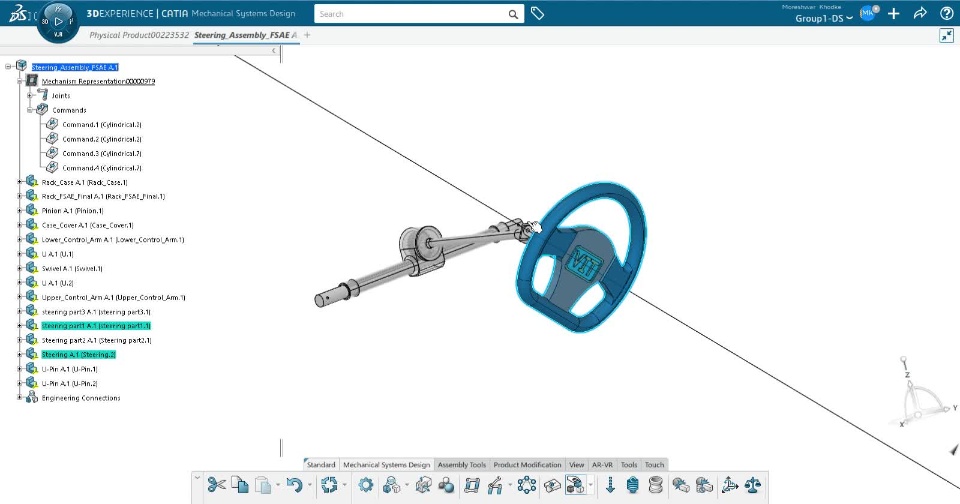 This post is the final post about 'Design of Suspension and Steering System for a Formula Student Car (FSAE) using 3DEXPERIENCE Platform'. It consists of the final assemblies of the steering and suspension system along with their simulation videos. It also contains the complete model of the FSAE car having both the systems assembled. For creating these assemblies, we have utilized the Assembly Design app. The simulation is carried out using Mechanical System Design app.