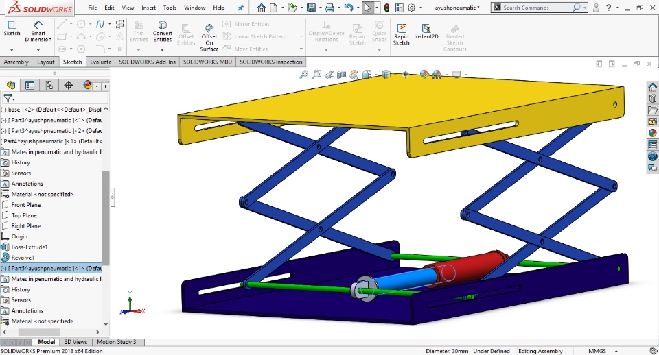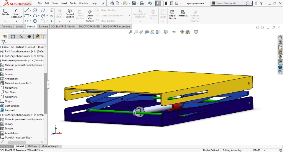 Greetings of the day to everyone, I'm Ayush mishra mechanical engineering student. As I participated in the ''PROJECT OF THE YEAR CHALLANGE 2021'' I selected my project work on the topic 'Pneumatic Scissor Lift Machine.' *What actually Pneumatic scissor Lift Machine is:- Before knowing about Pneumatic scissor lift machine we should know about it's parts so the parts are : Pneumatic Actuator, Pneumatic Parts and Fittings, Connecting Rod , Base Frame, Mount and Joint , Screw and Fitting and uses air pressurized air as a working medium. Working:- Pneumatic lifts employ a lifting mechanism which incorporates a hollow cylinder and piston. An external hydraulic pumps moves the piston within cylinder ,increase the internal air pressure and causing the cylinder to move along the axis of the piston.