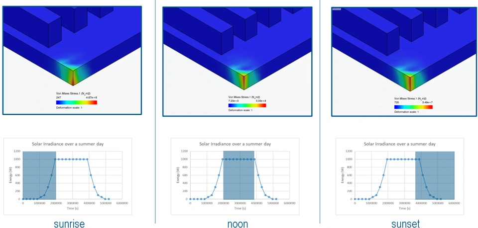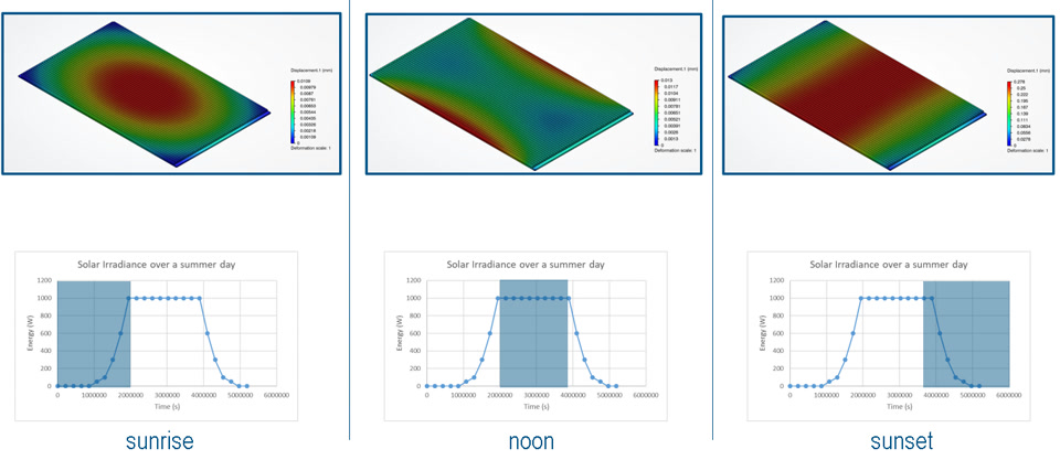 Perform transient heat transfer analysis of a solar panel integrated with a passive heatsink and perform shape optimization on heatsink fins to maintain acceptable temperatures, through out a summer day.