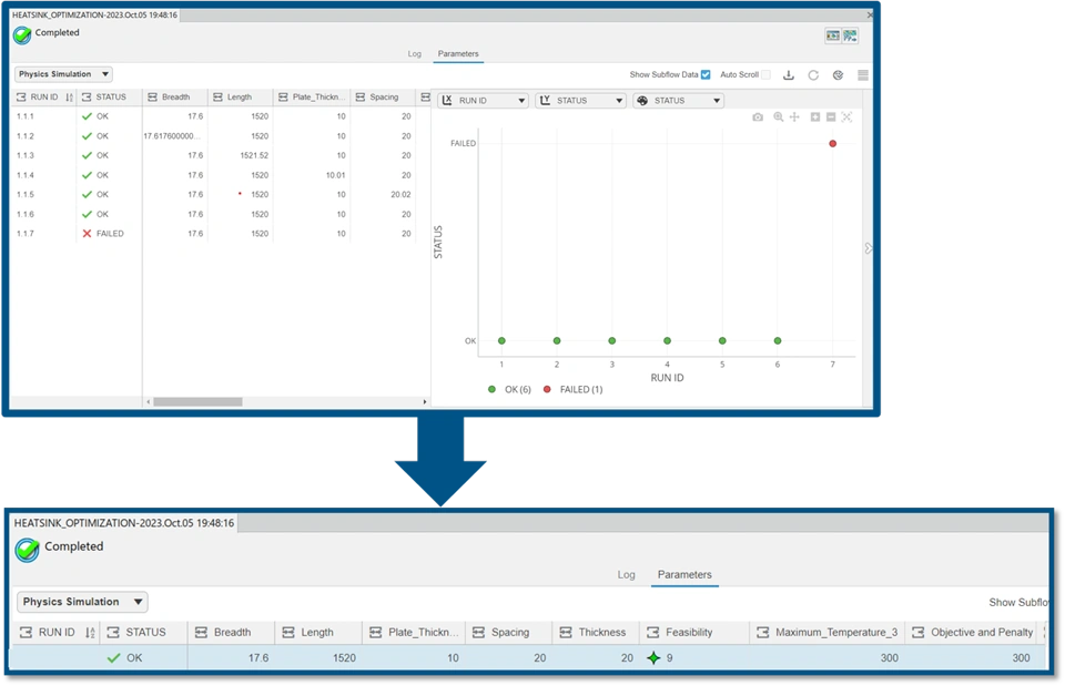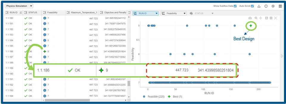 Therefore the parameter “thickness” has also been added as an objective to be minimized with the previous objective, Max. Temperature.
