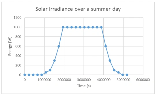 A.The solar irradiance on a solar panel can be depicted be the following curve: