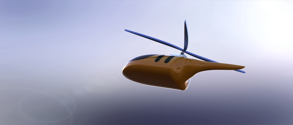 Render and flow analysis images of my helicopter design.