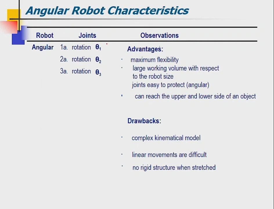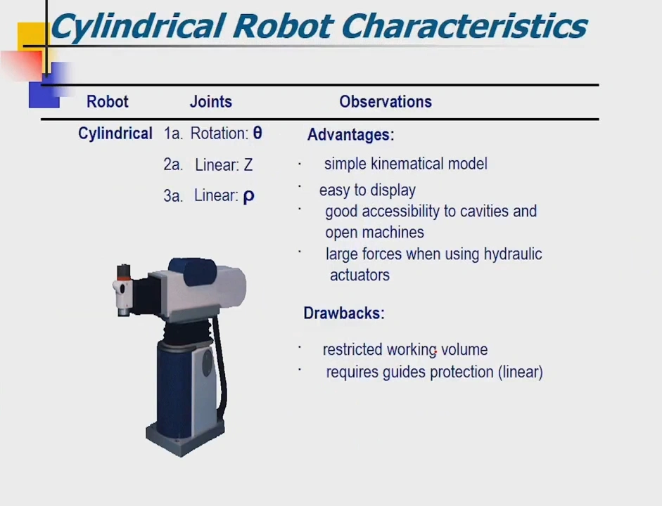 A robot architecture is the combination and disposition of the different kinds of joints that configure the robot kinematical chain. There are five common body-and-arm configurations for industrial robots: