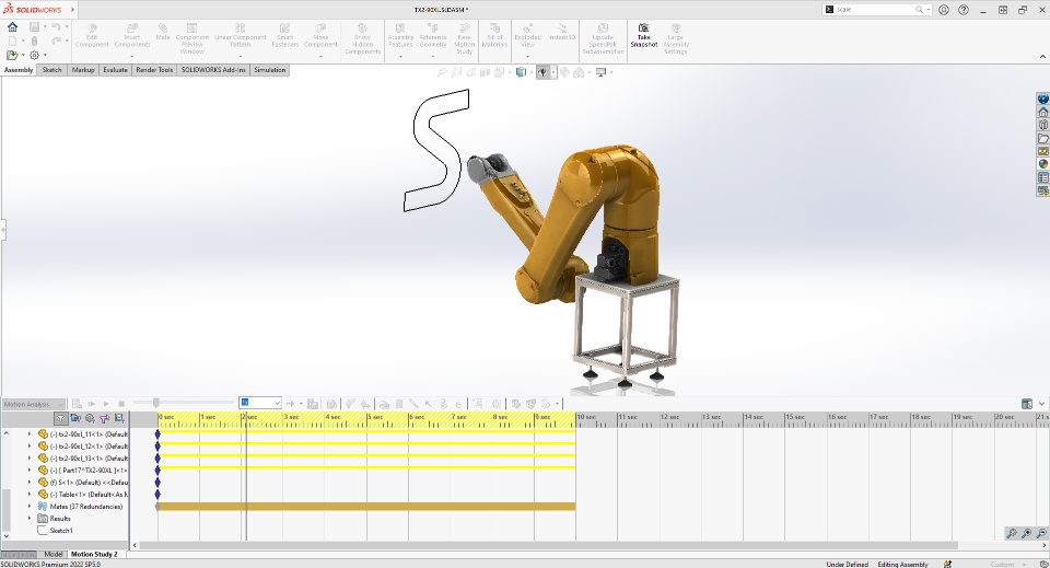 This SOLID Saturday we have 6-Axis robot animation here. For this design, I've downloaded the assembly of 6-Axis robot from PartSupply and applied mates and essential constraints with the help of SOLIDWORKS in order to make this robot write 'S' for SOLID Saturday. After creating the motion of robot with SOLIDWORKS Motion Analysis we can use the Path Tracing Feature to trace the motion of robot. You can also use this type of components from PartSupply and use it in your design (Click here to know how).