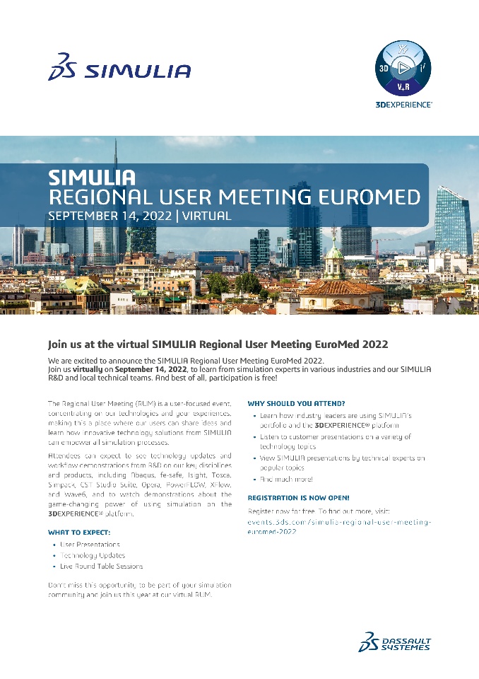 Join us at the virtual SIMULIA Regional User Meeting EuroMed 2022!