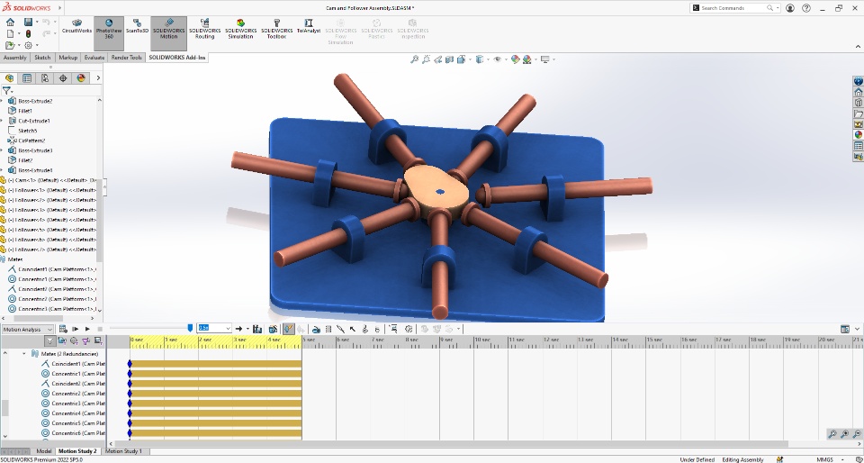 This SOLID Saturday we have animation of Cam and Follower created in SOLIDWORKS which highlights the feature of Spring and Contacts in motion study.