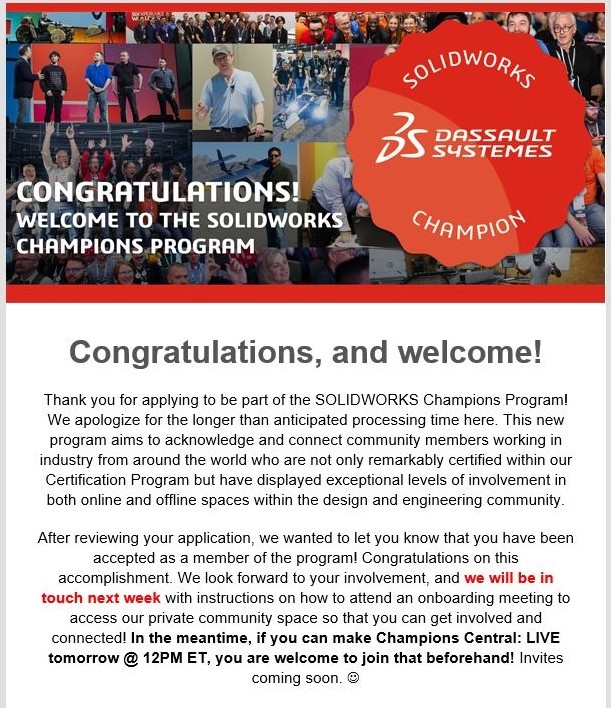 Hello,Finally the email I was waiting for arrived. I'm so happy now. Thank you SOLIDWORKS and DASSAULT SYSTEMES.