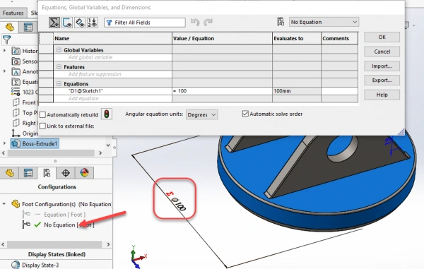 Hello, I'm trying to figure out where to find the configuration and Global variable box to be able to type in for 'A' on the SolidWorks xdesign