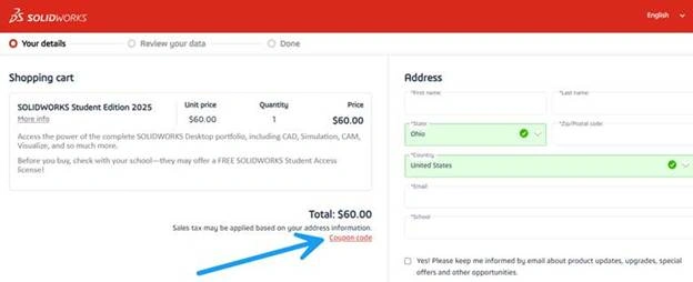 With this coupon, students can get SOLIDWORKS for Students for only \\\$30 USD/year (regularly \\\$60).