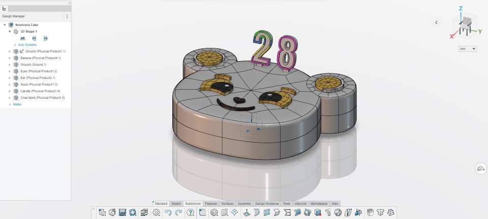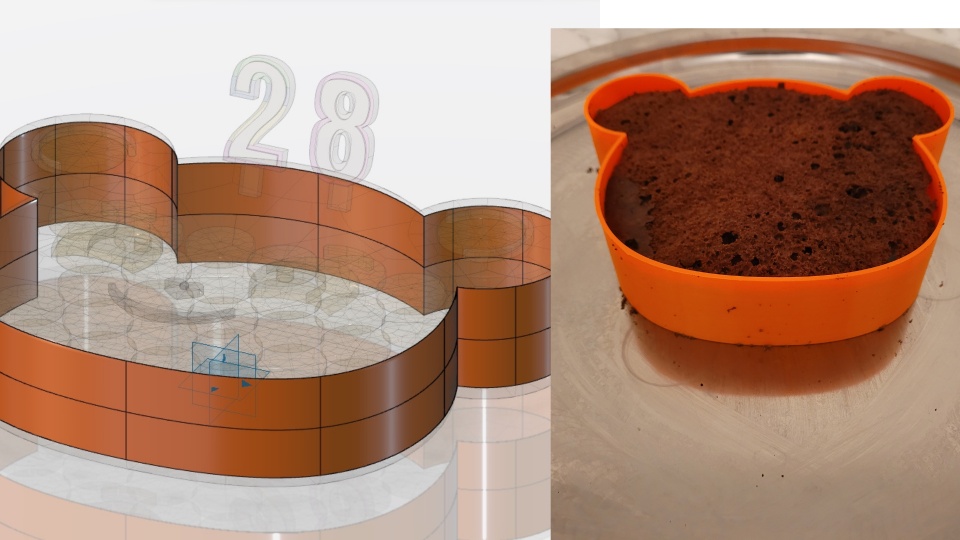 As you may be aware, I enjoy transforming my designs into tangible objects. Consequently, I fashioned a cake mold based on the model and produced it using a 3D printer.