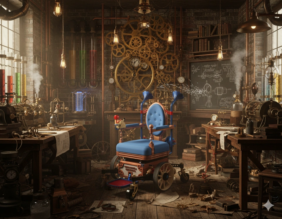 Allow me to introduce the Chronos Navigator—a wheelchair that goes far beyond mobility. It's a fusion of engineering, art, and empowerment, brought to life through the spirit of Steampunk design.