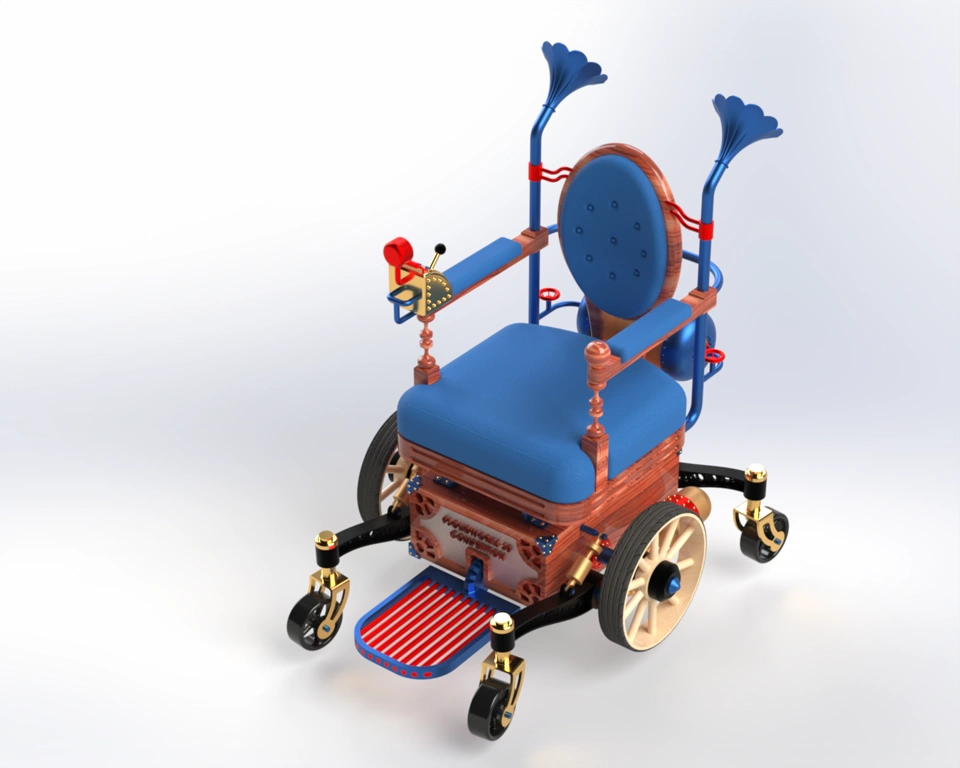 The project began as a challenge from a friend and a personal desire to push my creative boundaries with SOLIDWORKS. I wanted to transform something purely functional a wheelchair into a piece that combined mechanical precision with artistic imagination.