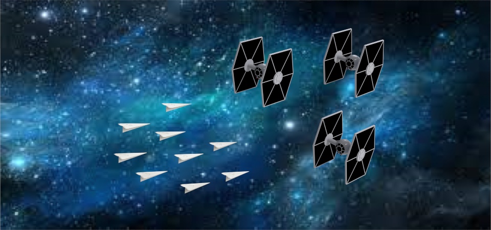 Wouldn't it be cool to imagine a space war between paper planes and the dreaded TIE Fighter?Well, I played with that in this model, I hope you like it.