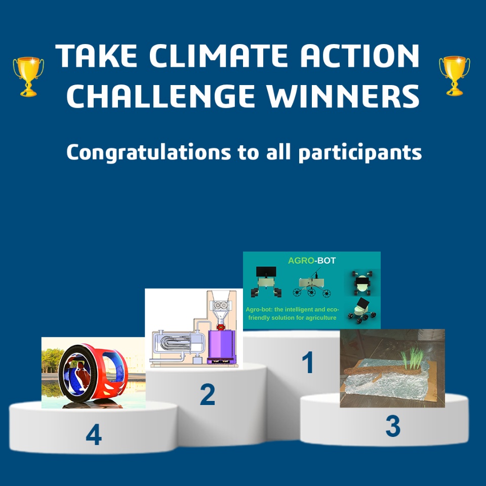 Thank you all for your participation to Take Climate Action challenge. We had received many good projects but 4 of them were outstanding! Discover in this video the 4 winners of the 2022 edition of the TCA challenge!