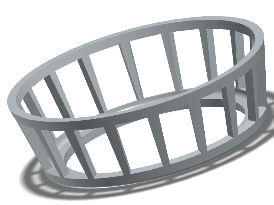 The two material layers have different compositions. The inner ring layer has a thin steel layer, while the outer ring layer has a medium density fiberboard layer. The material is layered to change the spindle's center pivot point and help create an effective flow field.