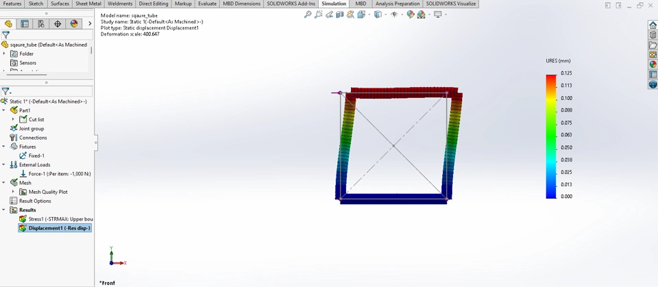 The results were astounding. The triangulated design proved to be incredibly robust, withstanding loads that would have compromised less efficient structures. This project not only reinforced my understanding of structural mechanics but also showcased the beauty and power of SOLIDWORKS as a tool for innovation and problem-solving.
