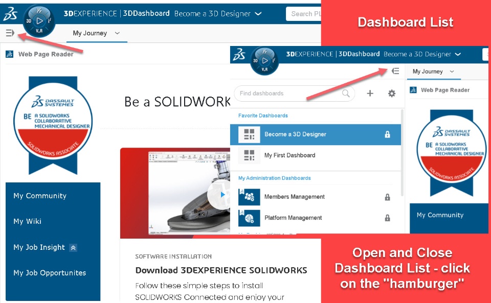 #3DEXPERIENCE Dashboards are very helpful. Here is a short cut tip to open and close your Dashboard list.