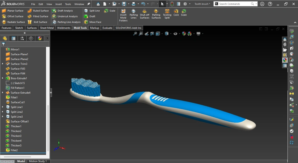Mastering the fundamentals of SolidWorks surfacing is absolutely essential to create a complex, ergonomic design like a toothbrush that i have choose to show up. Here's why basic surfacing knowledge forms the foundation for such advanced designs: