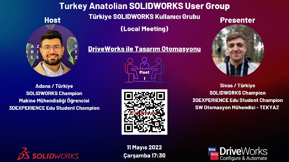 Hello everyone. will be on Wednesday, May 11th. Dear @RP has a presentation for us at this first meeting. The topic of our meeting is "Design Automation with DriveWorks". In this meeting, you can learn new things, ask questions to the narrator one-on-one, and network with everyone involved.