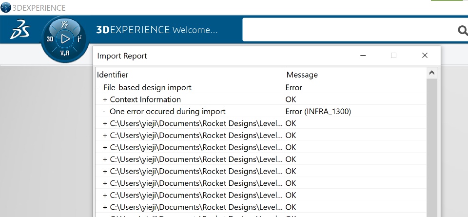 Frequently, I am unable to import CATIA V5 files from a large assembly and have to revert to individually importing each part. Does anyone know why this error is occuring