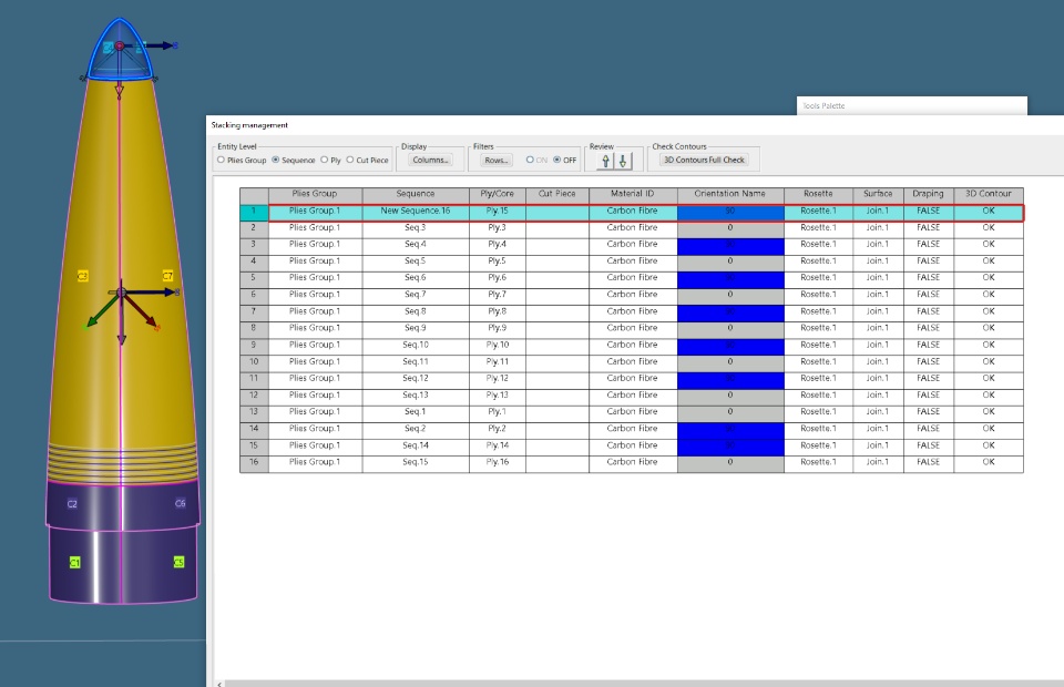 This is the second post in a series where I will show you how my team and I at AQUILO, a student rocket team based in the Netherlands, use Dassault Systems' Composites design app in our manufacturing process. In my previous post, we discussed how we prepared the design of the nose cone mould using the Generative Wireframe & Surface app from Dassault Systems. Today, we will discuss how to add plies to corresponding grids and how to visualise and change the stacking to our needs.