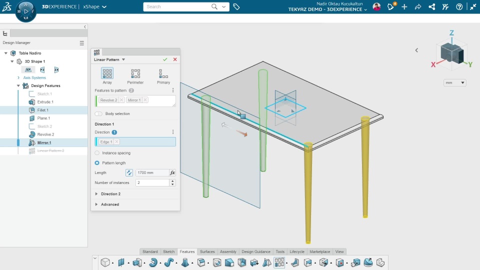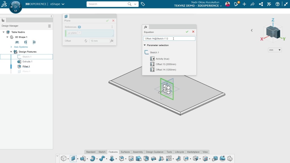I showed how to assign the plane by equation. The reason I did this was to adjust the legs of the table according to the width while giving the width measurement.