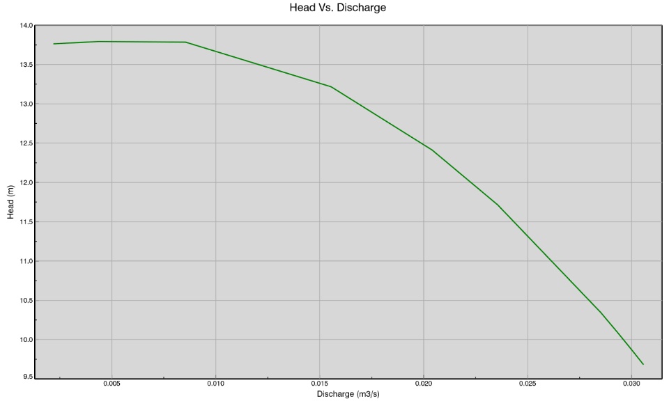 The pump is usually designed to operate at a particular speed, discharge, and head. But it might happen that the pump is running at some different operating point, that is why it is necessary to conduct tests or trials on a pump to predict its behavior and performance under varying conditions. The results obtained through these tests are called characteristic curves. Characteristic curves are of 2 types: 1) Main Characteristics and 2) Operating Characteristics. Using the virtual lab that we have created; we can carry out both of these trials on the setup and we can plot the required graphs. For example, the following results were obtained from the test that we have carried out on this setup: