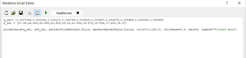 To plot these graphs, we have used scripting in which we have utilized a function which was there in Dymola Commands. The following image shows one such script.