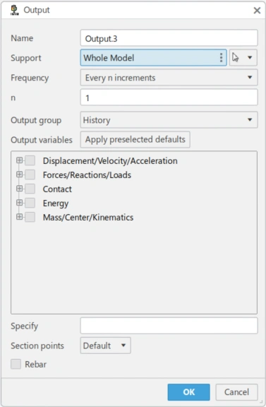 - You can request History Outputs in the scenario definition (just like in Abaqus/CAE step module).
