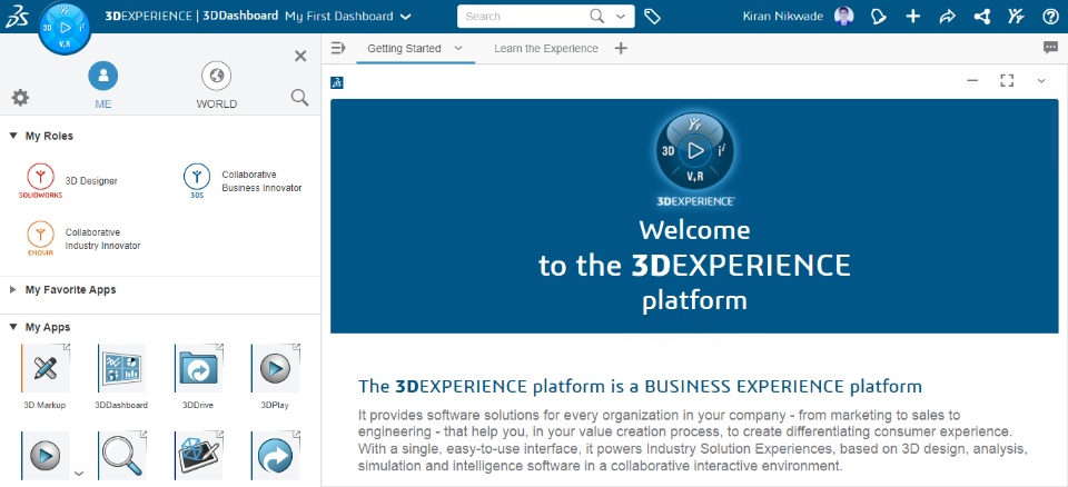 Dassault Systèmes 3DEXPERIENCE is a collaborative platform where community members can share ideas as well as access tools to build on these ideas. The dashboard is the landing page where your company’s members access this information and tools.