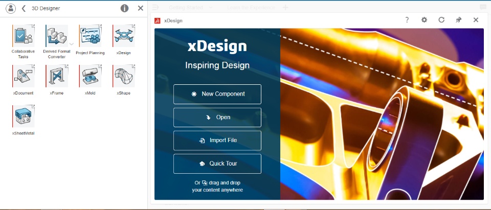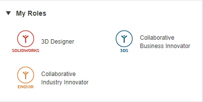 Dashboards can be used for defined roles—for example, 3D Component Designer—or for specific apps, such as SOLIDWORKS xDesign.