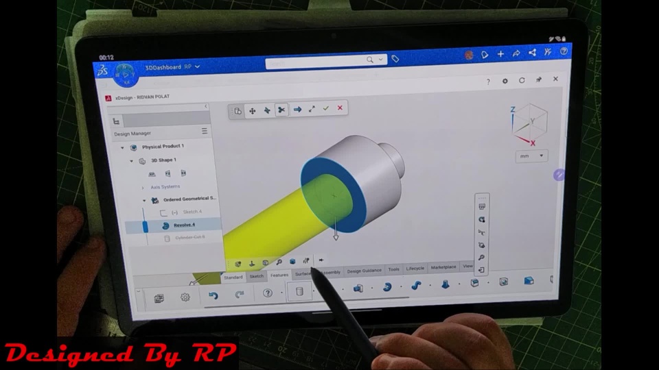 In the video, I made a simple design using both the drawing commands I am familiar with from SolidWorks and the shapes in the xDesign program. My aim is to get used to designing with a tablet and to share more advanced designs and assemblies with you after getting used to it.