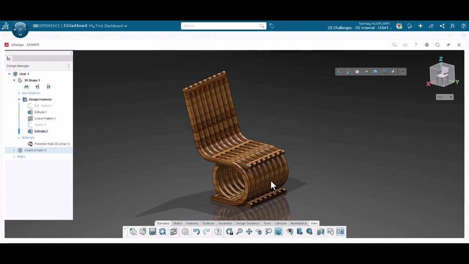 In this model i created a CAD model of a chair with the help of xDesign on the 3DEXPERIENCE Platform.