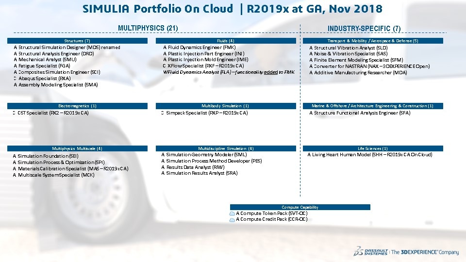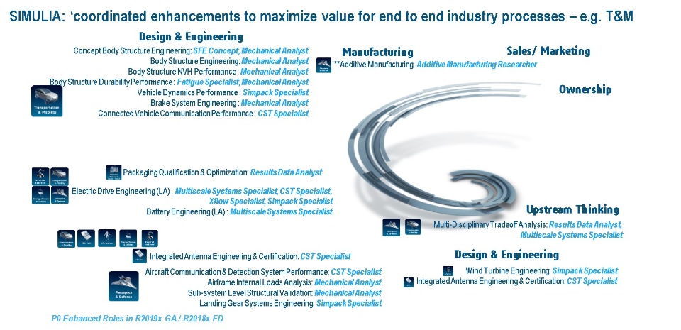 You will find below an overview of the key new additional values provided by the 3DEXPERIENCE platform and all 3DS Brands roles and apps (CATIA; ENOVIA; DELMIA; SIMULIA; 3DEXCITE; NETVIBES EXALEAD; Quintiq; GEOVIA; BIOVIA) delivered in the 3DEXPERIENCE platform R2019x on the cloud.