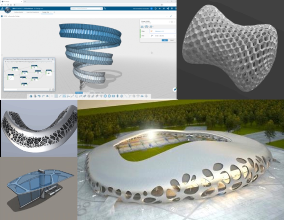 This new, intuitive and smart approach allows creative people in Architecture, Design/Styling and Engineering to quickly design, explore and validate variations of complex, repetitive and non-regular shapes and patterns. All created geometry is available to be used in the world of detailed design and manufacture through the rich portfolio of roles on the 3DEXPERIENCE platform.