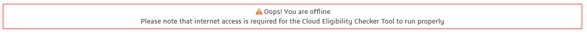 Note that it is essential to have internet connectivity to run the Cloud Eligibility Checker Tool properly. A few checks fail if internet connectivity is offline. The tool would display generic messages in the checks when this would happen. Now it has been improvised to have a proper warning at the very top of the check table