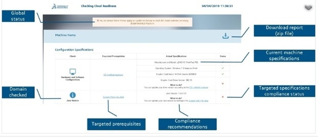 The 3DEXPERIENCE Cloud Eligibility Checker is a tool to automate DASSAULT Systèmes prerequisite checks on your machine in order to optimize your 3DEXPERIENCE Platform on Cloud experience.