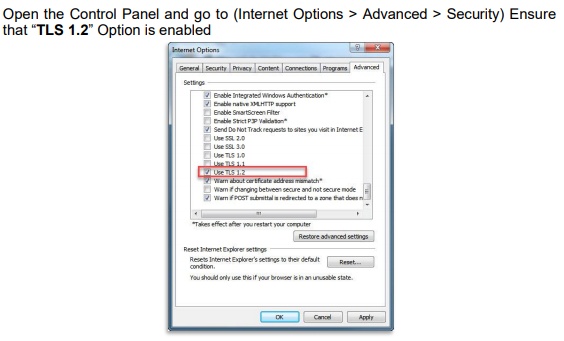 Browser Setup - Use TLS 1.2: