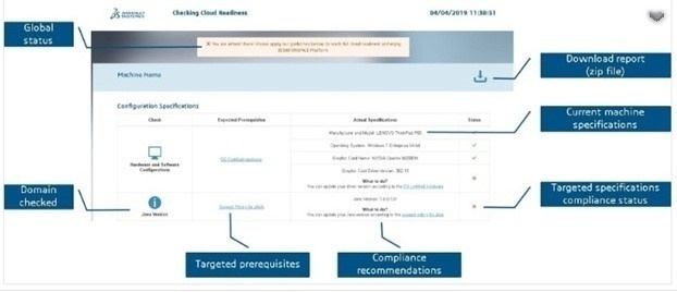 The 3DEXPERIENCE Cloud Eligibility Checker is a tool to automate Dassault Systèmes prerequisite checks on your machine in order to optimize your 3DEXPERIENCE platform on Cloud experience.
