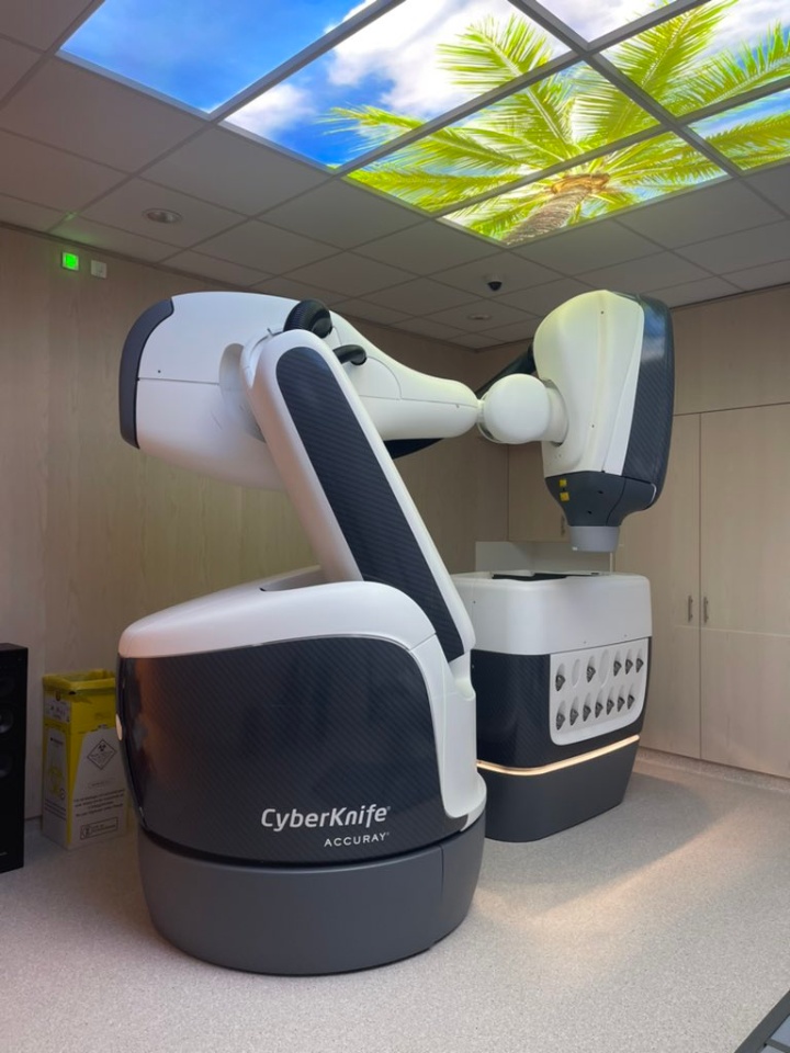 The virtual room of the VORTHEx project is a virtual twin of the new room of the Institute of Radiotherapy and Radiosurgery H. HARTMANN Institute of Radiotherapy and Radiosurgery, equipped with the latest Cyberknife robot from Accuray, and allows patients to experience the treatment beforehand. In concrete terms, the 3D simulation will faithfully reconstruct all the technical and protocol components of the treatment: the room, the robot arm, the patient's position, the modalities and the stages of the sessions. This virtual experience is supervised by a member of the H. HARTMANN Institute's care team, who will accompany the patient throughout the process and answer all questions related to the situation.