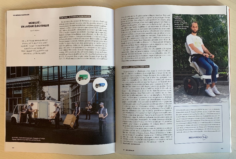 For the 2nd quarter, WeDemain, the french magazine focused about Innovation, Sustainability, Collective Intelligence, published a double page about 2 of startups accelerated by the 3DEXPERIENCE Lab.