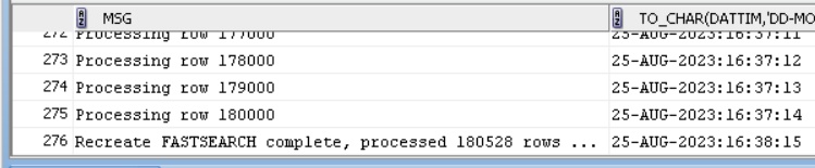 where the MSG column will include the rows processed, and the DATTIM column includes the date and time.