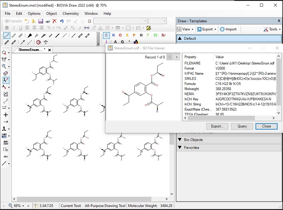 From 2D to 3D visualization, CAS number lookup all the way to R-Group or stereoisomer enumeration, many add-ins are available that extend the core functionality of BIOVIA Draw.