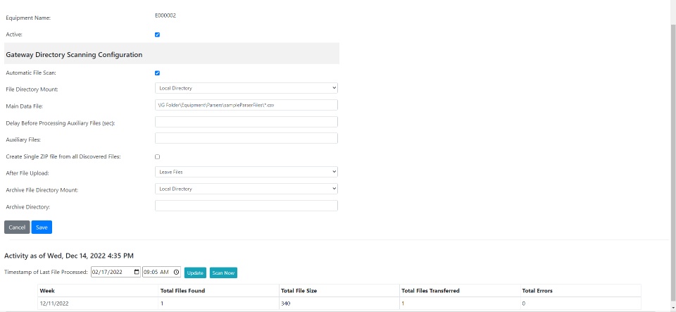 This successfully found my .csv file, and can tell because at the bottom the scan found one file (I only have one file in this folder). Follow these examples and attempt to successfully add an equipment to a Gateway.