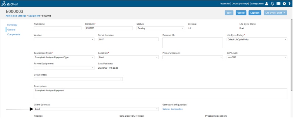 This post will go over the steps required to add a Hub Equipment to the Integration Gateway. The first step is to chose a piece of Equipment. Then Edit the options for the Client Gateway and set it to the desired Gateway. In the below screenshot I have set this Air Analyzer to Bend Gateway I had created.