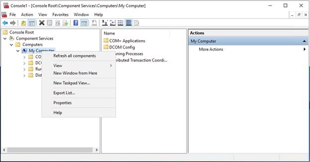 - Expand ‘Component Services’ to reach ‘My Computer’.