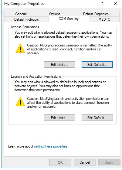 - Click ‘COM Security’ tab.