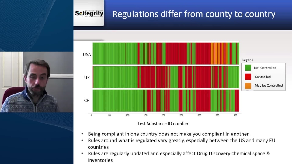 drug discovery Discovery organizations maintain novel chemical collections running into the hundreds of thousands or millions of chemicals, plus building blocks and reagents. Given the vast numbers of chemicals under management it can often be difficult to identify any regulatory or safety requirements that may go with these chemicals. Compliance Hub from Scitegrity, powered by Pipeline Pilot , provides R&D organizations a way to automatically identify regulated or dangerous chemicals and generate shipping information such as HS tariff codes.