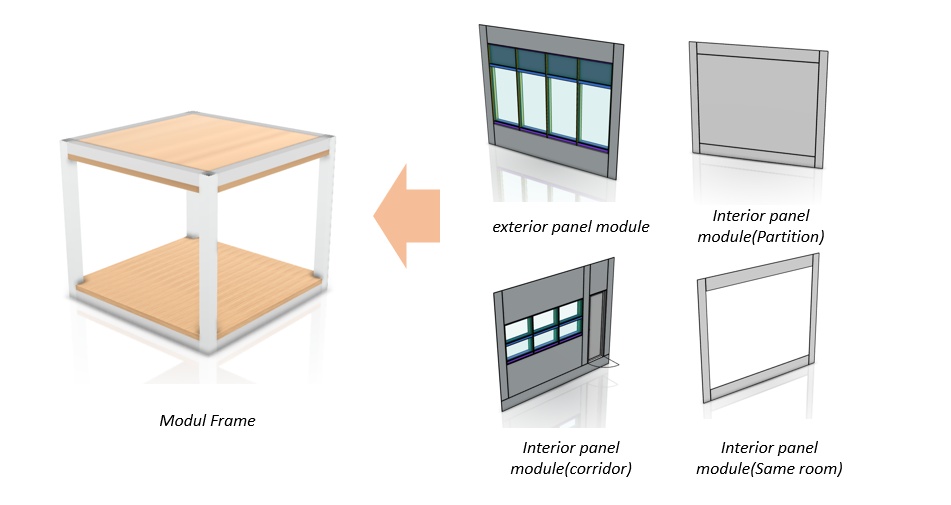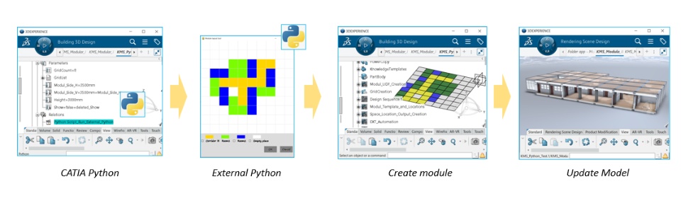 The information created here is imported into CATIA using the Python script inherent in CATIA, the module plane is recreated, and then the CATIA Automation Templates are automatically executed. CATIA Template contains the contents of arranging the module frame, analyzing the location of each space, and inserting the appropriate wall module type.